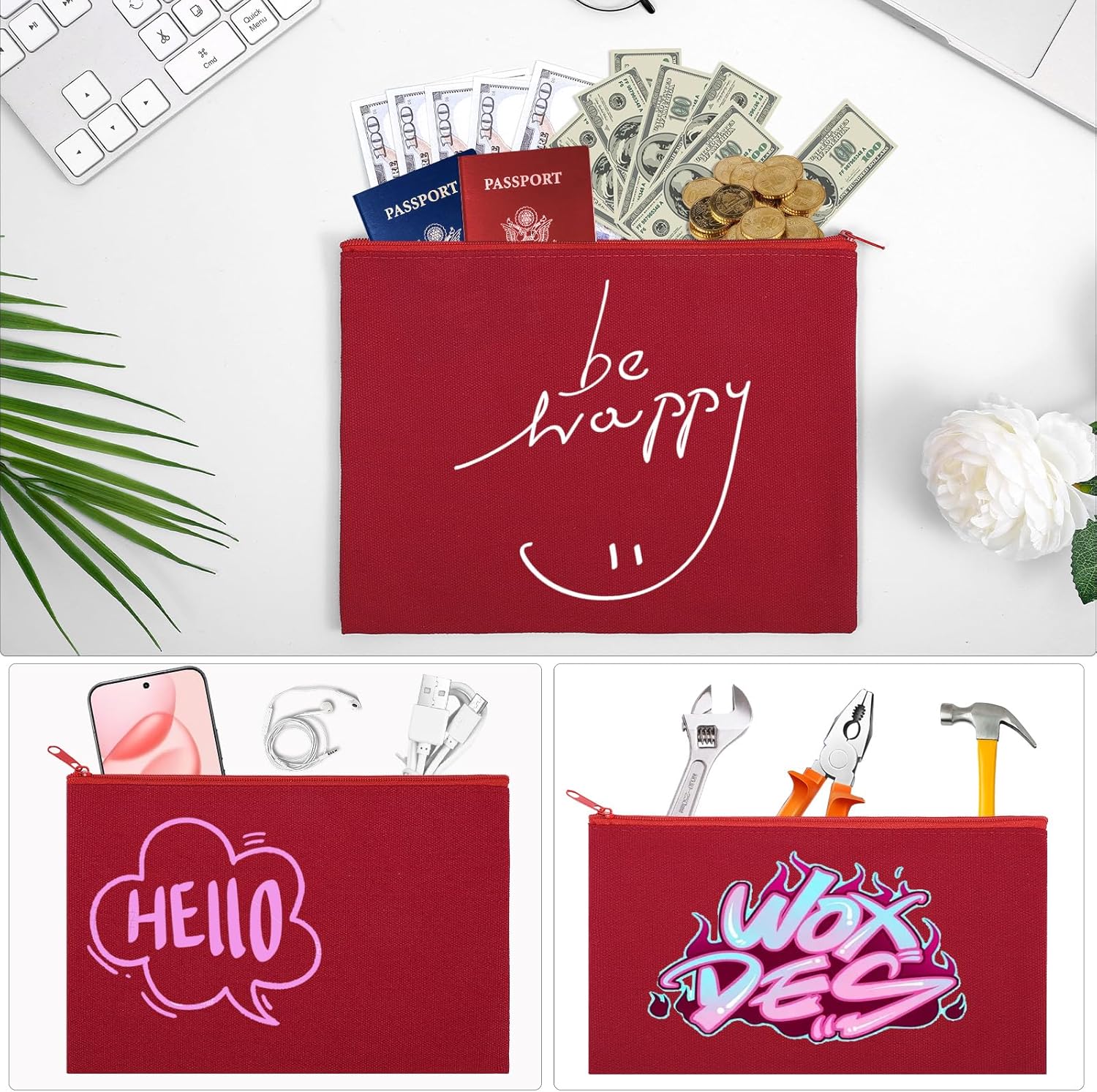 12 Pieces Cotton Canvas Makeup Bag, Multipurpose Cosmetic Bag with Zipper Travel Toiletry Pouch, Blank DIY Craft Bag (Red, L)