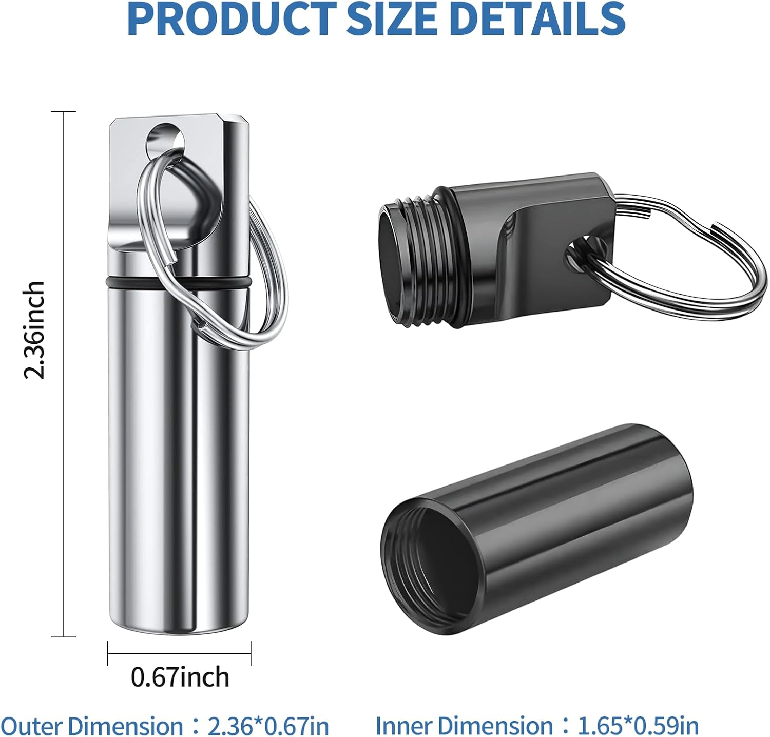 - Compact and Lightweight: Weighing only 0.51 ounces (14.5 grams), the external dimensions are 2.36*0.67 inches (61.7 cm), and the internal dimensions are 1.65*0.59 inches (4.21.5 cm). With a thickened key ring, it can be easily attached to a key chain, belt loop, handbag, backpack or golf bag, making it an ideal choice for carrying around.