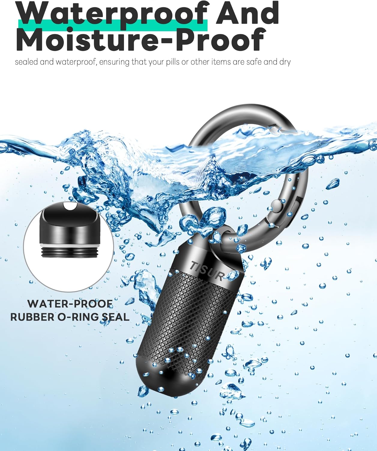 - Waterproof Pill Container: The small metal pill case has a rubber O-ring seal made it airtight and watertight enough to keeps your pills inside safe and dry when you are on vacation, trip, travel, camping or any outdoor activity.