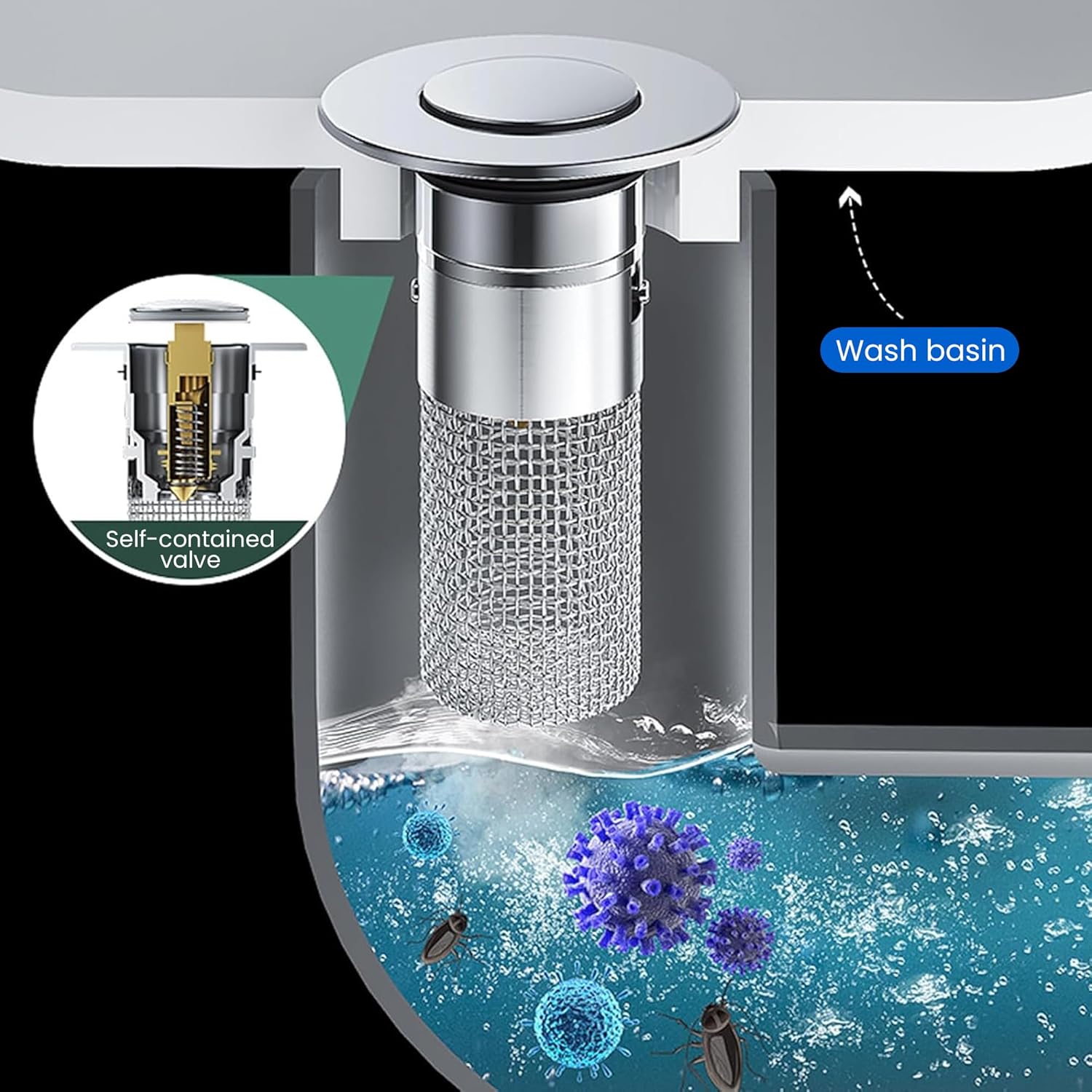 - 【Pop-up Extended Filter Design】The extended stainless steel filter basket efficiently captures hair and debris, preventing bathroom sink clogs. The easy-to-use pop-up mechanism allows you to control drainage effortlessly. The 2-in-1 functionality combines stopper and filter into one unit, making it easy to remove and clean, ensuring efficient drainage with minimal maintenance.